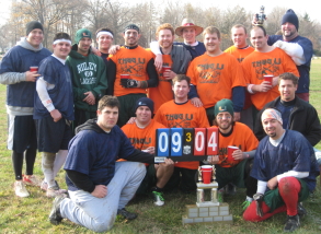 Since its inception 26 years ago the game has become one of the most anticipated and celebrated events of the year. Naturally, as the years have passed the game and it's surrounding festivities have become more elaborate. In 2002 (Turkey Bowl III) the teams began competing for the right to hoist the "Dickey"/Township Trophy; named after legendary Ridley hobo: Dickey. Over the years players have come and gone; but the game, the competition, and the camaraderie remain strong. ![]() |